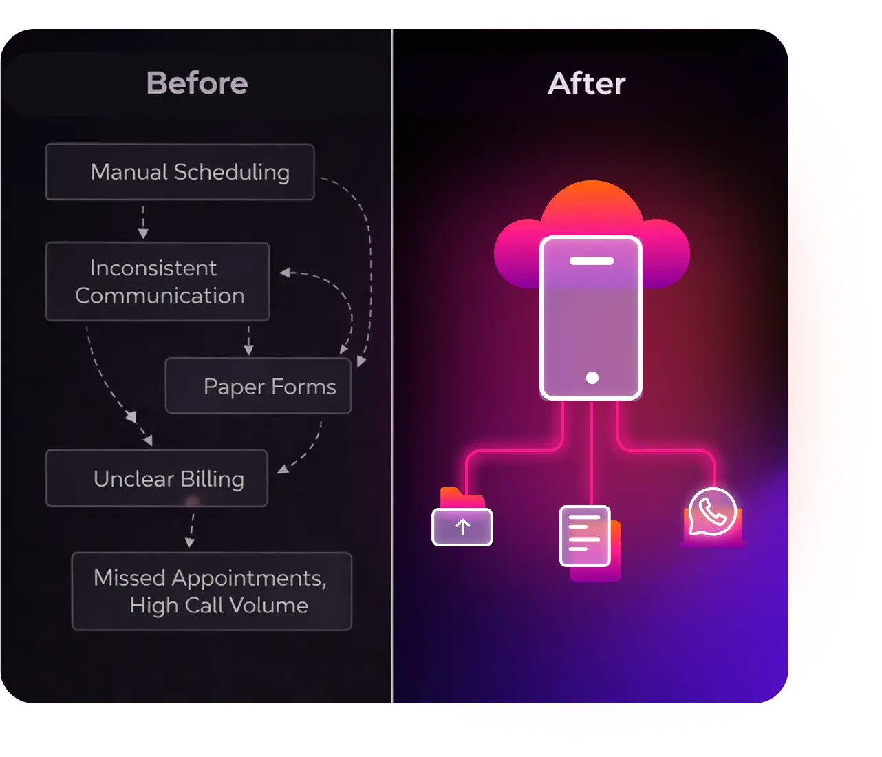Your patients want efficient scheduling and expect healthcare to be simple, digital, and intuitive. But many practices still rely on manual scheduling, inconsistent communication, paper forms, and unclear billing. This leads to patient frustration, missed appointments, higher inbound calls, and a poor overall experience. Without a coordinated digital workflow, practices lose efficiency, revenue, and patient loyalty. Plus patients want information at their fingertips, easily accessible online and inmobile-friendly applications.